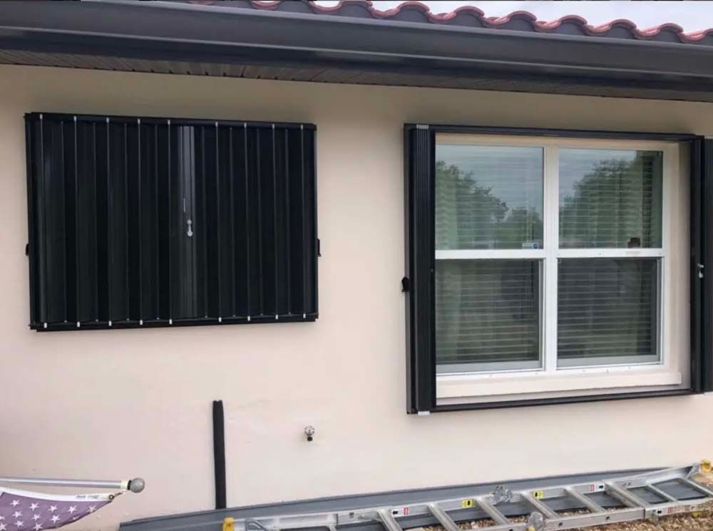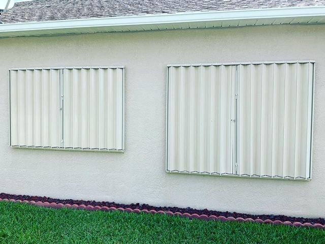 Accordion Shutters are permanently installed for year-round protection. They fold back compactly similar to a louvered door and are one or two-piece shutters. They are installed beside windows and doors, balconies, and large patio openings. Accordion shutters are convenient, and easily closed within minutes. They lock from the inside or outside for increased security and protection. Accordions are made of aluminum and should be cleaned and lubricated yearly. Accordion shutters are considered one of the strongest shutters available.